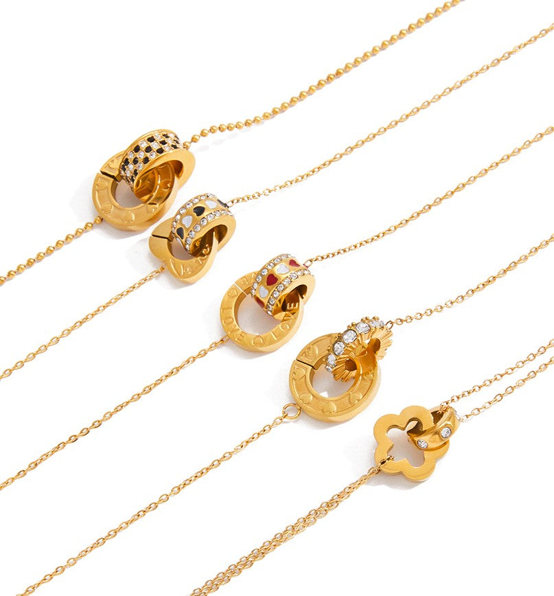 Collier en acier inoxydable zircon blanc en or 18 carats