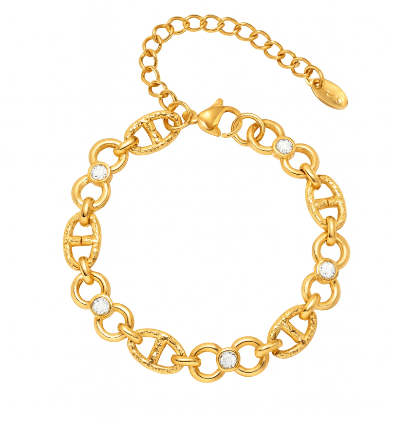 Bracelet en acier inoxydable plaqué or 18 carats et les diamants en zircon