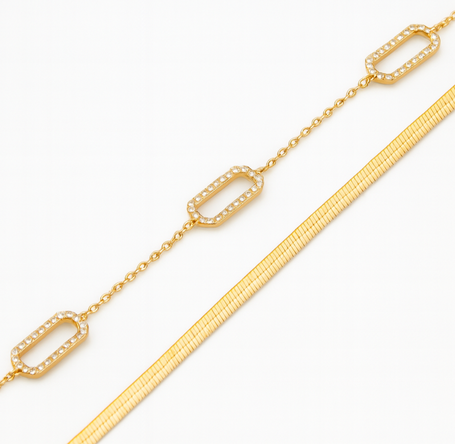Ensemble en acier inoxydable zircon blanc en or 18 carats