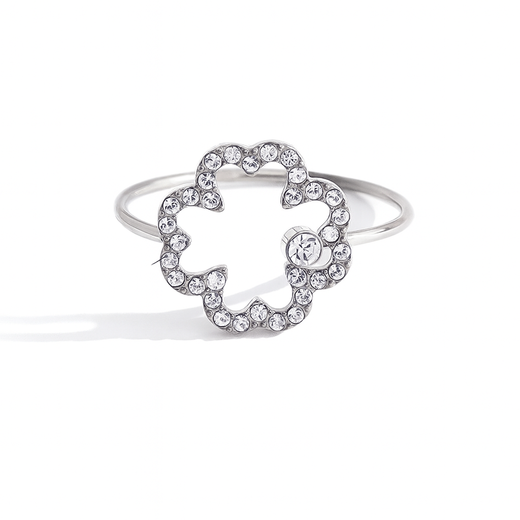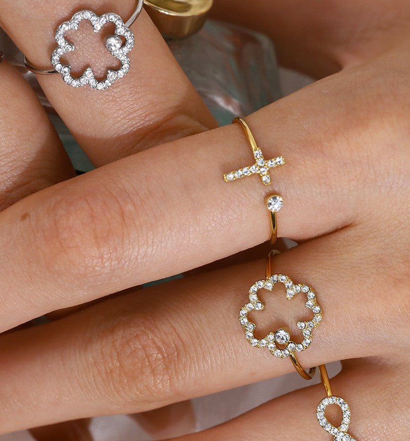 Bague en acier inoxydable plaqué or avec diamants en zircon, ajustable