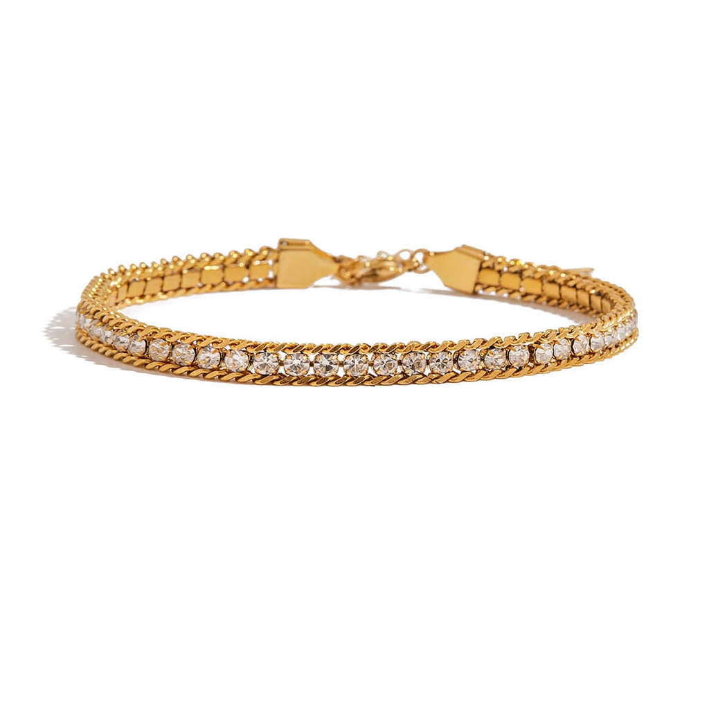 Bracelet en chaîne de tennis plaqué or 18 carats avec boucle en zircone