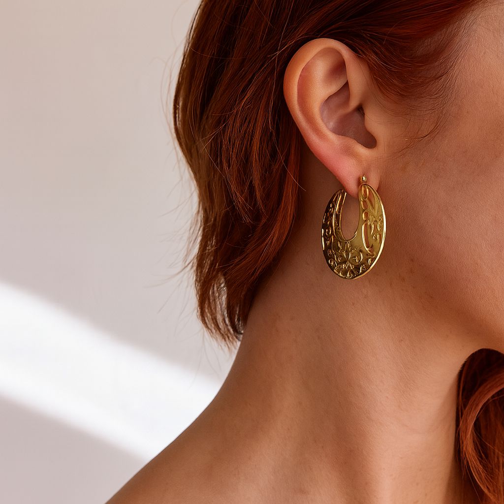 Boucles d'oreilles acier inoxydable vintage en forme de fleur creuse plaqué or 18 carats
